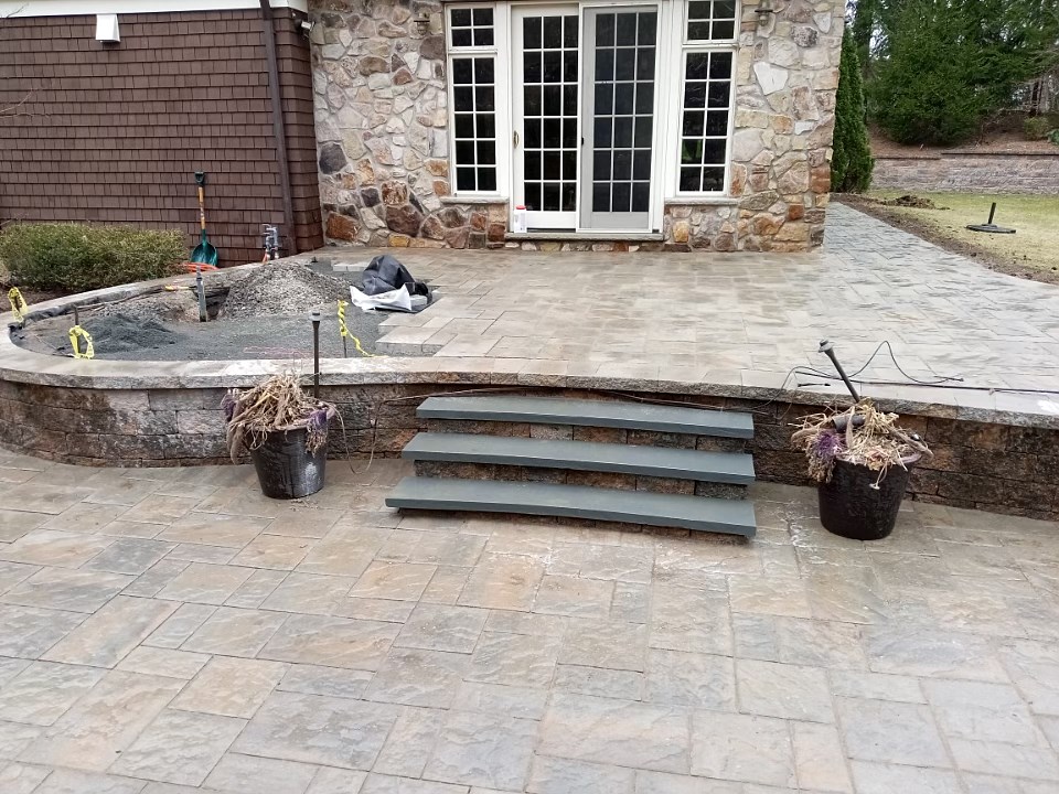 Patio constructions come in various forms, such as exposed or semi-enclosed, with some homeowners opting to add an open kitchen to create an ideal place for relaxation and entertainment. However, in cases where the ground is sloping, excavation may be necessary to construct anything outside. This excavation can expose dirt and rocks, resulting in soil erosion or a landslide. To avoid these issues, retaining walls can be built to support the ground. Our page showcases examples of our patio, and walkway installations, all of which are meticulously designed, planned, and finished using high-quality materials. As seen in these images, we ensure a cohesive look in your outdoor spaces by using complementary materials for your walks leading out into the yard or landscape. We provide customized services, so you can rest assured that the patios and walkways we design and plan for you will complement your property as they do on our clients' properties here.Click on the images below to view a larger display.